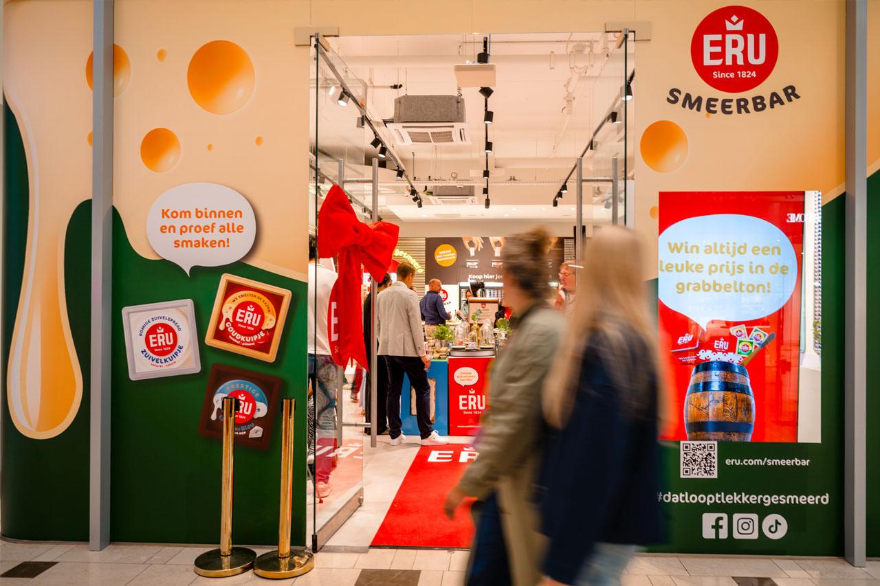 Hoe vertaal je een alledaags foodproduct naar een onderscheidende merkactivatie? Voor Koninklijke ERU realiseerde Popup Brandstores de ERU Smeerbar: een tijdelijke pop-up brandstore in Hoog Catharijne waar gemak, smaak en beleving samenkwamen.